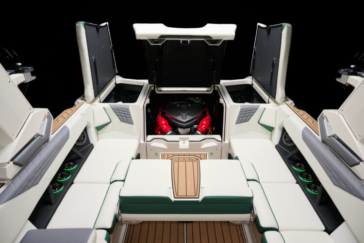 2026年モデルのSuper Air Nautique S23は、伝統的なバウ(船首)デザインの美しさと現代的な革新性を融合させた、23フィートサイズの高性能モデルです。Gシリーズで実証済みの受賞歴ある設計要素を取り入れたハル(船体)により、S23は年齢やスキルレベルを問わず、カスタマイズ可能なウェイクと波を提供します。